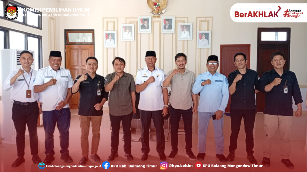 BOLTIM – Agenda audiens sekaligus silaturahmi dengan Forum Koordinasi Pimpinan Daerah (Forkopimda) kembali berlanjut. Rabu (26/11), Komisi Pemiihan Umum (KPU) Bolaang Mongondow Timur (Boltim) berkunjung ke Polres Boltim dan Pemerintah Daerah (Pemda) Boltim. Di Polres Boltim, Ketua dan Anggota KPU serta sekretaris dan jajaran secretariat diterima Wakapolres Kompol Sumidi, S.Sos, bersama Kabag Ops AKP Wensi Saerang, serta Kasat Intel IPTU Arther Reynold Lebang. Dalam suasana penuh keakraban dan kekeluargaan itu, jajaran KPU berdiskusi banyak hal berkaitan dengan penyelenggaraan Pemilu dan Pilkada di Boltim, serta agenda yang sedang dan akan dilaksanakan KPU. Sementara itu, di Pemda Boltim, komisioner KPU dan jajaran diterima Bupati Oskar Manoppo dan Wakil Bupati Argo Vinsensius Sumaiku. Kegiatan Pemutakhiran Data Pemilih Berkelanjutan (PDPB) dan Verifikasi Partai Politik (Verpol), serta agenda kerja sama kelembagaan dibahas dalam pertemuan tersebut. “Terima kasih kepada Polres Boltim dan Pemda Boltim yang sejak awal sampai akhir tahapan Pemilu maupun Pilkada selalu bersama KPU memberi dukungan terhadap penyelenggaraan semua tahapan yang dilaksanakan. Insya Allah sinergitas kelembagaan yang selama ini sudah terjalin baik, tetap terjaga terutama dalam mengahadapi agenda Pemilu dan Pilkada yang akan datang,” kata Ketua KPU Rusmin Mamonto, didampingi Anggota KPU Wardoyo Elias dan Nugroho Lasabuda. Agenda yang sama sebelumnya juga dilakukan KPU Boltim dengan berkunjung ke Kejaksaan Negeri (Kejari) Kotamobagu serta Kodim 1303 Bolaang Mongondow (Boltim). ....