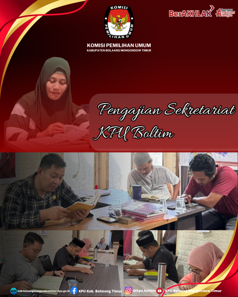 Tutuyan — Komisi Pemilihan Umum (KPU) Kabupaten Bolaang Mongondow Timur melaksanakan pengajian rutin pada Jumat, 14 November 2025. Kegiatan yang digelar di ruang rapat kantor KPU Boltim ini dipimpin oleh Kasubbag Teknis dan Hukum, Intan R. Panekey.