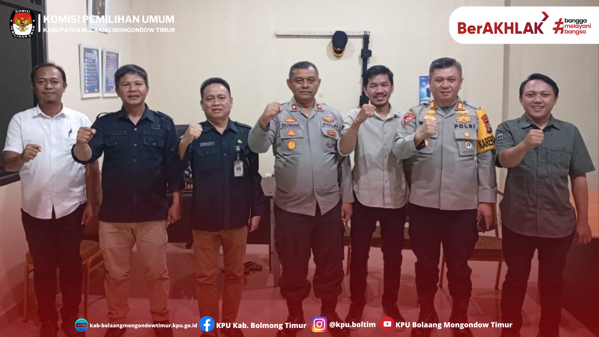 Di Polres Boltim, Ketua dan Anggota KPU serta sekretaris dan jajaran secretariat diterima Wakapolres Kompol Sumidi, S.Sos, bersama Kabag Ops AKP Wensi Saerang, serta Kasat Intel IPTU Arther Reynold Lebang. Dalam suasana penuh keakraban dan kekeluargaan itu, jajaran KPU berdiskusi banyak hal berkaitan dengan penyelenggaraan Pemilu dan Pilkada di Boltim, serta agenda yang sedang dan akan dilaksanakan KPU.