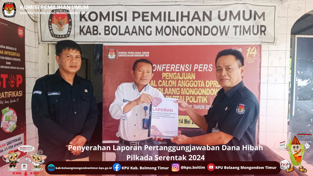 Senin, 5 Mei 2025 – Komisi Pemilihan Umum (KPU) Kabupaten Bolaang Mongondow Timur (Boltim) menyerahkan laporan penyelenggaraan tahapan Pemilihan Kepala Daerah (Pilkada) 2024 kepada Pemerintah Daerah (Pemda), Senin (5/5), di lantai III Kantor Bupati. Laporan itu diserahkan Ketua KPU Rusmin Mamonto didampingi Anggota KPU Wardoyo Elias, Nugroho Lasabuda, Adchilni Abukasim dan Ikal Salehe, kepada Bupati Oskar Manoppo yang didampingi Wakil Bupati Argo Sumaiku serta jajaran Pemda Boltim. Laporan yang disampaikan KPU ke Pemda Boltim itu memuat semua rangkaian kegiatan yang dilaksanakan selama tahapan berlangsung. "Penyerahan laporan ini merupakan proses paling akhir dari semua tahapan Pilkada," kata Rusmin Mamonto. Disisi lain, ia mengapresiasi semua stakeholder yang telah mendukung penyelenggaraan pelaksanaan Lilkada 2024 sehingga bisa berjalan dengan aman dan lancar. "Terima kasih kepada semua pihak yang ikut bersama-sama menyukseskan pelaksanaan Pilkada Boltim. Keberhasilan penyelenggaraan Pilkada ini merupakan hasil kerja kolektif kita bersama," ujarnya. Anggota KPU Sulut, Awaludin Umbola, dalam sambutannya menyampaikan apresiasi kepada KPU Boltim atas kinerja yang telah dilakukan selama pelaksanaan Pilkada 2024. “Kami menyampaikan terima kasih kepada KPU Boltim yang telah bekerja secara maksimal dalam menyelenggarakan Pilkada serta meningkatkan partisipasi masyarakat dalam pemilihan Bupati dan Wakil Bupati Boltim,” ungkap Awaludin. Sementara itu, Bupati Bolaang Mongondow Timur, Oskar Manoppo, dalam sambutannya menyampaikan penghargaan kepada jajaran KPU Boltim atas keberhasilan dalam menyelenggarakan Pilkada secara demokratis transparan dan partisipatif. “Saya menyampaikan terima kasih kepada KPU Boltim yang telah menjalankan tugas dengan sangat baik. Pilkada 2024 sukses digelar dan menghasilkan partisipasi masyarakat yang sangat tinggi, yakni mencapai 84%. Ini adalah capaian luar biasa,” tutur Bupati. Kegiatan dilanjutkan dengan prosesi penyerahan piagam penghargaan kepada perwakilan instansi dan stakeholder yang telah mendukung pelaksanaan Pilkada, sebagai bentuk apresiasi atas kontribusi selama tahapan berlangsung.