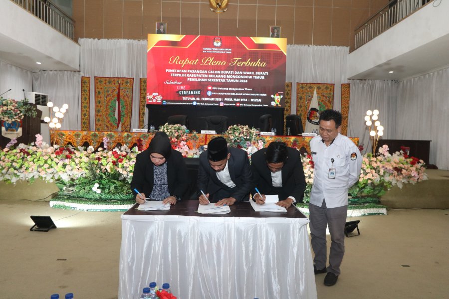 Komisi Pemilihan Umum (KPU) Kabupaten Bolaang Mongondow Timur (Boltim) gelar kegiatan Penetapan Pasangan Calon Bupati dan Wakil Bupati terpilih Kabupaten Bolaang Mongondow Timur pada pemilihan serentak Tahun 2024