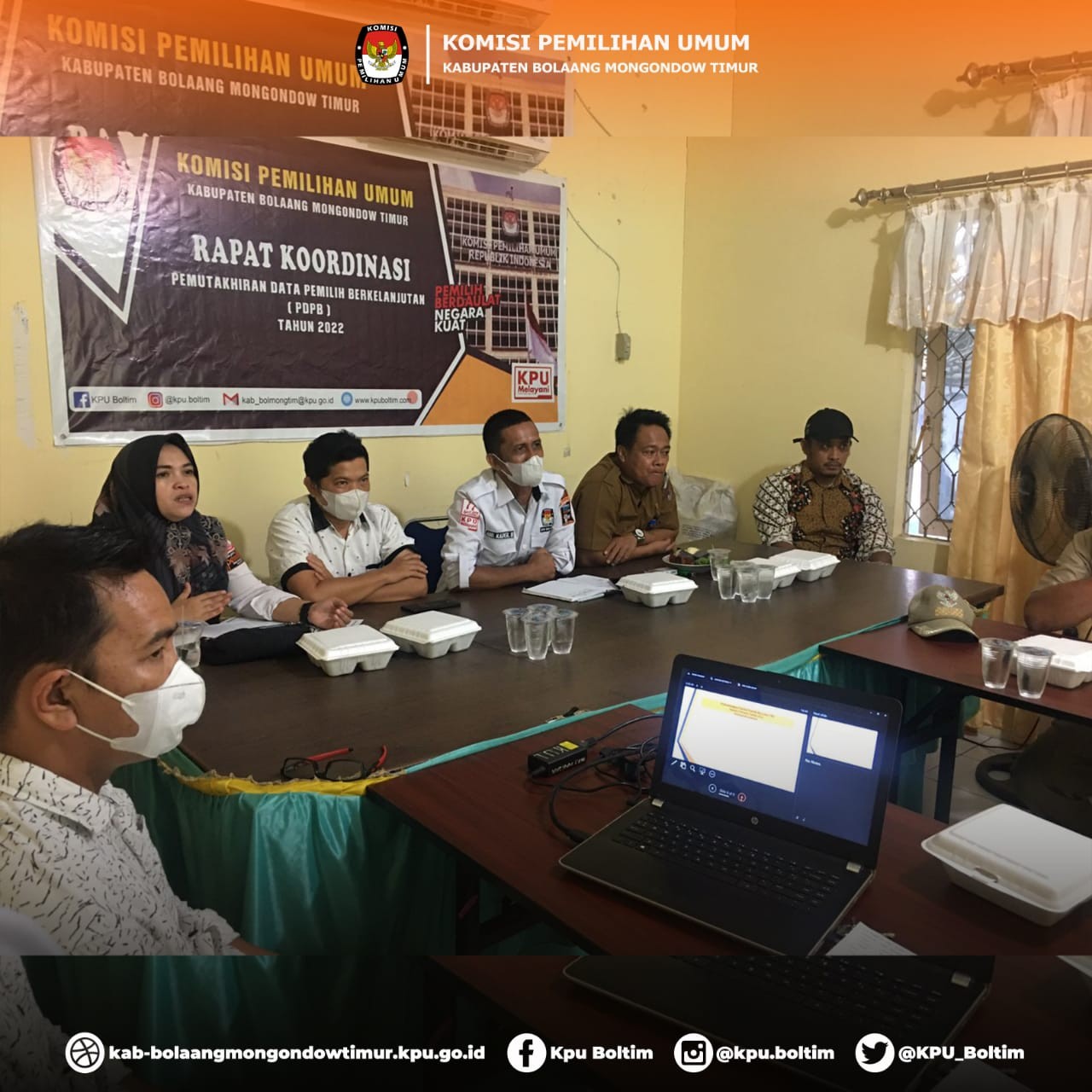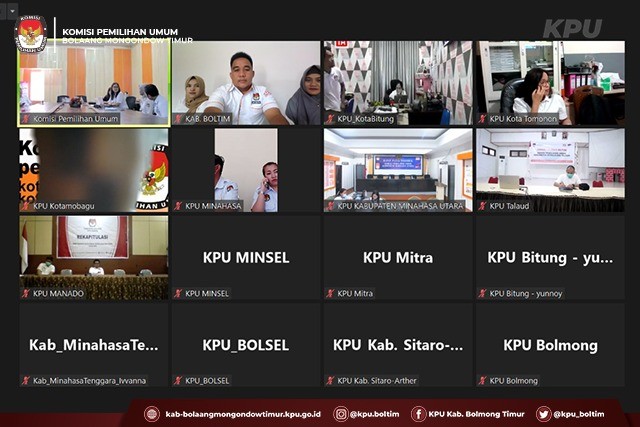 KPU Provinsi Sulawesi Utara menggelar Rapat Koordinasi (Rakor) pemetaan Tempat Pemungutan Suara (TPS) di 15 Kabupaten/Kota, Kamis 14 April 2022, melalui aplikasi Zoom Meeting. Sebagai peserta yaitu Kadiv Data, Kasubag serta operator dari 15 Kabupaten/Kota. Rakor dibuka oleh salah satu Komisioner KPU Provinsi Bapak Meidy Tinangon. Dalam sambutannya, Tinangon menekankan bahwa kegiatan Pemetaan TPS adalah momentum untuk mendeteksi dini, serta mengantisipasi permasalahan yang bisa muncul saat tahapan pembuatan TPS. Usai dibuka secara resmi, Rakor kemudian dipimpin oleh Ketua Divisi (Kadiv) Perencanaan Data dan Informasi KPU Provinsi, Ibu Lanny Ointu. Selanjutnya Ointu meminta Kadiv Data Kabupaten/Kota mempresentasikan hasil pemetaan yang sudah dilakukan masing-masing. Ointu memeriksa setiap kabupaten kota, apakah sudah memetakan sesuai regulasi, diantaranya, jumlah 300 pemilih maksimal di setiap TPS apakah sudah dimasukkan dalam Sistem Data Pemilih (Sidalih), dan disinkronisasi dengan Pemutakhiran Data Pemilih Berkelanjutan (PDPB) secara online. Ointu menambahkan bahwa untuk TPS saat ini dari semua kabupaten kota bisa jadi akan bertambah lagi dikarenakan pemilih yang belum merekam KTP yang akan terus disingkronisasi ke dalam PDPB bulan berjalan, jika nantinya sudah memiliki KTP. Kadiv Data KPU Boltim, Adchilni Abukasim melaporkan, untuk TPS Pemilu tahun 2019 berjumlah 225 TPS dengan 53.517 pemilih. Sementara TPS yang sedang dipetakan dan disingkronisasi dengan PDPB yaitu berjumlah 229 TPS dengan 55.069 Pemilih. TPS di Boltim mengalami kenaikan sebanyak 4 TPS dari pemilu 2019 ke PDPB 2022. Rakor kemudian ditutup oleh Ketua KPU Provinsi, bapak Ardiles Mewoh. Sebelum menutup kegiatan, Ardiles menyampaikan, dalam mengimplemntasikan regulasi tentang Data Pemilih, setiap penyelenggara harus membaca dengan teliti. Pemutakhiran Data Berkelanjutan, harus dikerjakan sepenuh hati. Sebab hasilnya akan digunakan pada PEMILU 2024 nanti. Terakhir Ardiles mengingatkan bahwa beberapa KPU kabupaten/kota yang masih ada permasalahan terkini Sumberdaya Manusia, agar dibahas bersama dan segera dicarikan solusinya. (Intan)