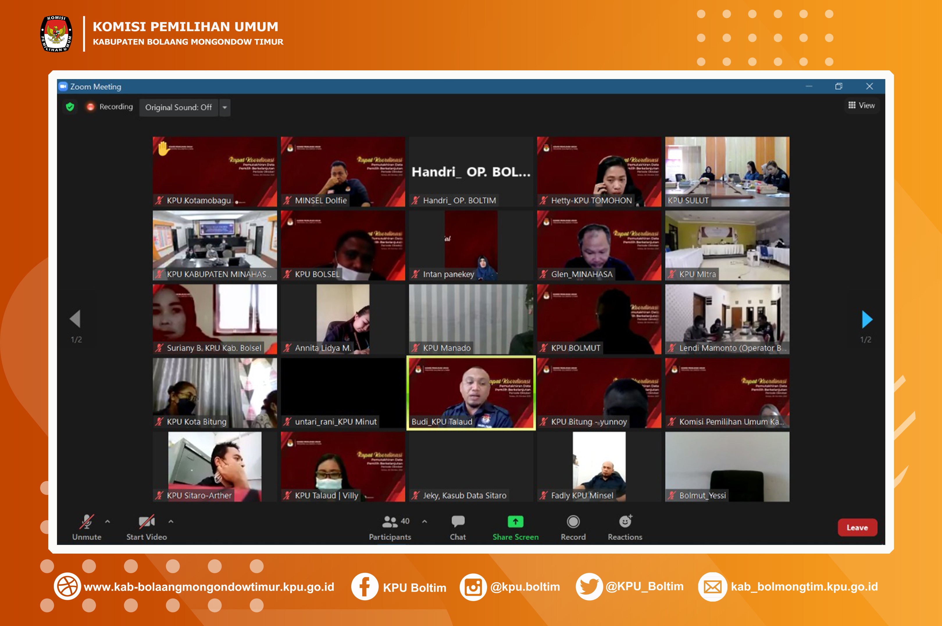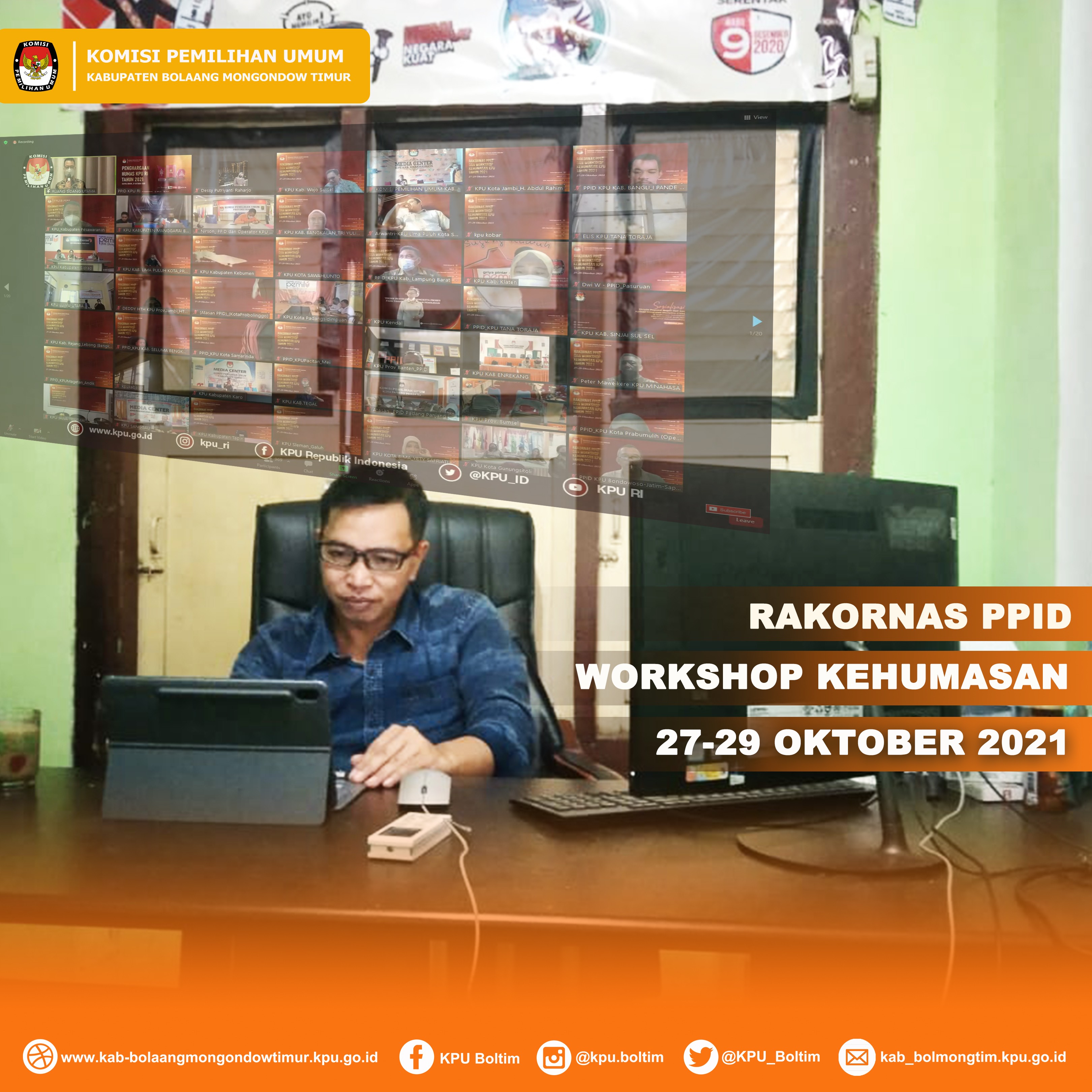 Jumat (29/10/2021) Komisi Pemilihan Umum (KPU) Kabupaten Bolaang Mongondow Timur kembali Mengikuti Rapat Koordinasi Nasional (Rakornas) Pejabat Pengelola Informasi dan Dokumentasi (PPID) dan Workshop kehumasan yang dilaksanakan KPU Republik Indonesia (RI) edisi hari terkahir yang mengusung agenda penghargaan Humas KPU RI tahun 2021 kepada KPU Provinsi/KIP Aceh dan KPU/KIP Kab/Kota.
