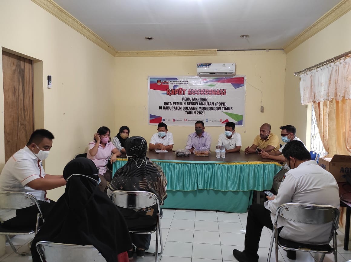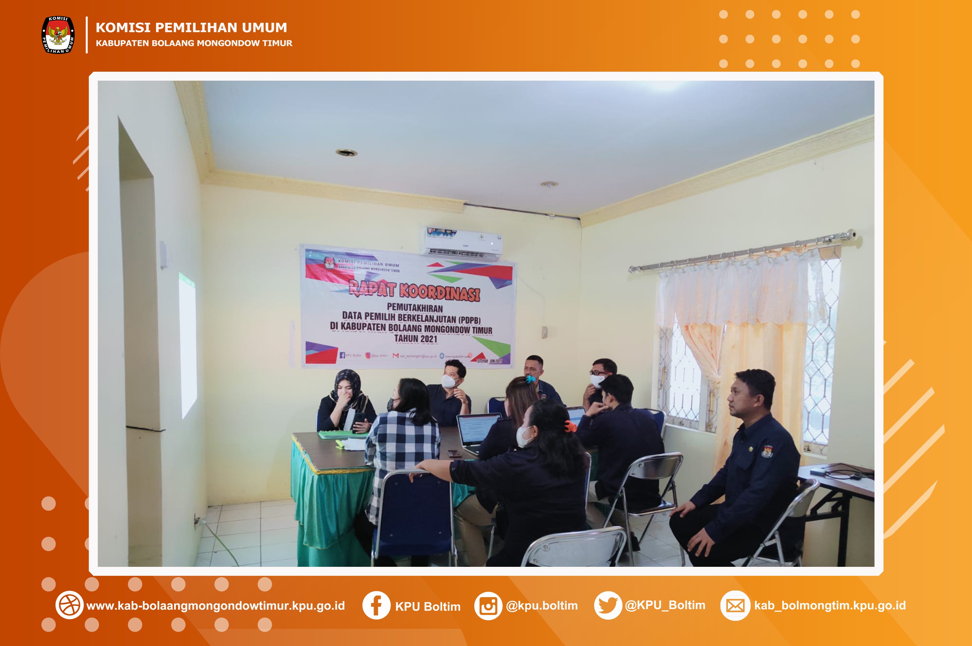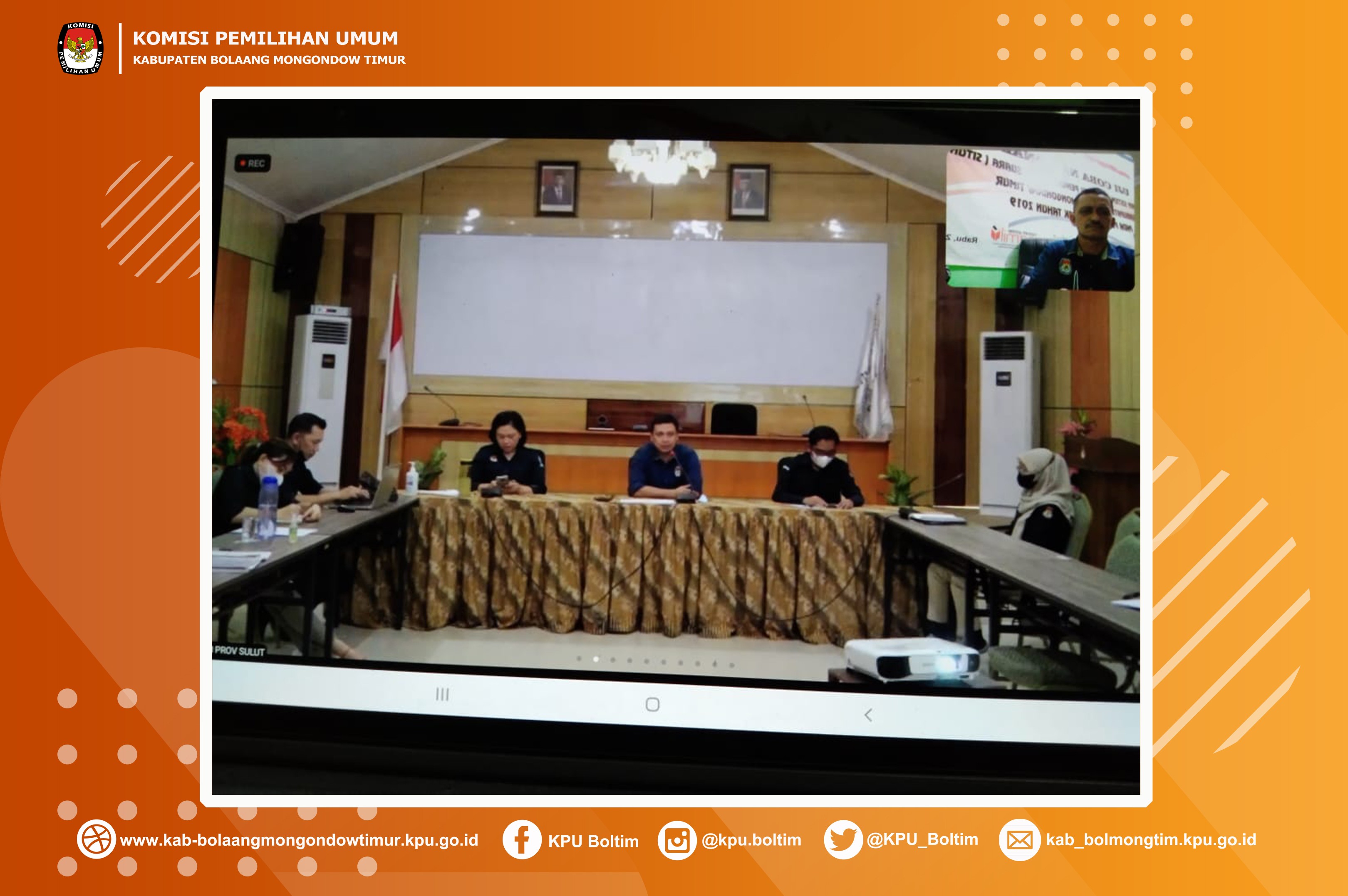 Tutuyan (26/10/2021), KPU Boltim mengikuti rapat koordinasi terkait Pergantian Antar Waktu (PAW) anggota DPRD Provinsi dan DPRD Kabupaten/kota, yang dilaksanakan oleh KPU Provinsi Sulut. Rakor ini diikuti oleh 15 KPU Kabupaten/Kota se Sulawesi Utara secara daring.