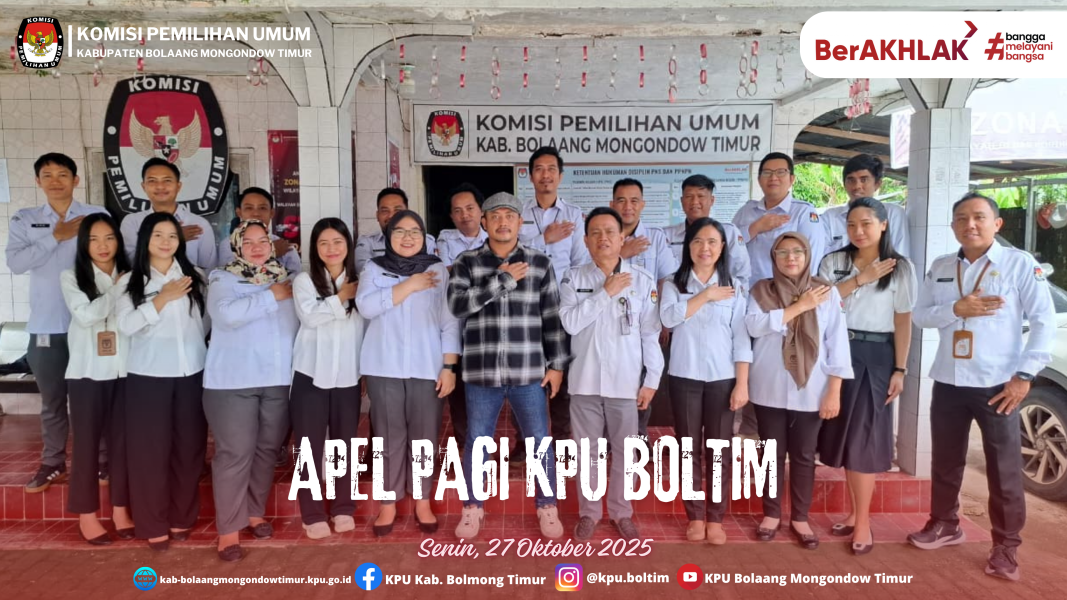 Dari KPU Kabupaten Bolaang Mongondow Timur (Boltim), kegiatan tersebut diikuti melalui Zoom Meeting oleh Divisi Partisipasi dan Hubungan Masyarakat (Parhubmas) serta SDM KPU Boltim, Ikal Salehe, didampingi Kasubbag Parmas Hendra V.S. Marentek, dan Staf Parmas Abdul Wahid Ibrahim.