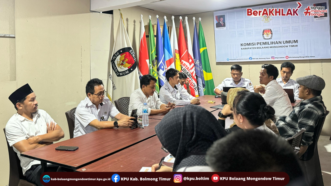 Tutuyan, 21 Juli 2025 – Komisi Pemilihan Umum (KPU) Kabupaten Bolaang Mongondow Timur menggelar rapat pleno rutin dalam rangka membahas agenda mingguan yang dilaksanakan di lingkungan sekretariat KPU Boltim. Rapat dipimpin langsung oleh Ketua KPU Boltim, Rusmin Mamonto, dan dihadiri oleh jajaran anggota Ketua Divisi Teknis Penyelenggara, Nugroho Lasabuda; Ketua Divisi Sosialisasi, Pendidikan Pemilih, Partisipasi Masyarakat dan SDM, Ikal Salehe, Ketua Divisi Perencanaan, Data dan Informasi, Adchilni Abukasim; serta Ketua Divisi Hukum dan Pengawasan, Wardoyo Elias. Turut hadir pula Sekretaris KPU Boltim, Dolfie Kereh, bersama jajaran staf sekretariat. Dalam rapat tersebut, masing-masing divisi memaparkan kemajuan kegiatan yang sedang dan akan dilaksanakan. Salah satu fokus pembahasan adalah agenda Divisi Teknis terkait pelaksanaan verifikasi faktual sekretariat partai politik, yang diharapkan dapat diselesaikan dalam minggu berjalan. Sekretaris KPU Boltim, Dolfie Kereh, dalam arahannya penekanan pentingnya kelancaran laporan kegiatan Pemilu. “Laporan Pemilu agar segera dipercepat karena KPU RI sudah meminta laporannya segera,” ungkapnya. Rapat pleno mingguan ini menjadi bagian dari langkah konsolidasi internal KPU Boltim untuk memastikan terselenggaranya tahapan Pemilu berjalan efektif, tepat waktu, dan sesuai regulasi.