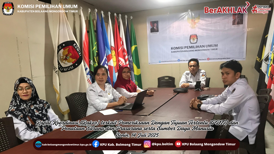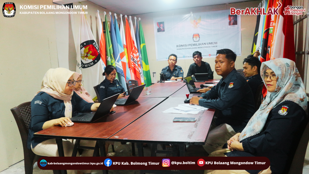 Tutuyan, 15 Juli 2025 – Komisi Pemilihan Umum (KPU) Kabupaten Bolaang Mongondow Timur mengikuti Rapat Koordinasi yang diselenggarakan oleh KPU Provinsi Sulawesi Utara via Zoom Meeting, Selasa (15/7). Kegiatan ini mengusung agenda Pemberitahuan Pemeriksaan Pendahuluan dengan Tujuan Tertentu atas Pengelolaan Belanja Pemilihan Kepala Daerah Serentak Tahun 2024, serta pembahasan terkait penataan sarana dan prasarana, termasuk penguatan sumber daya manusia (SDM).