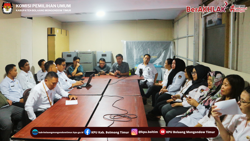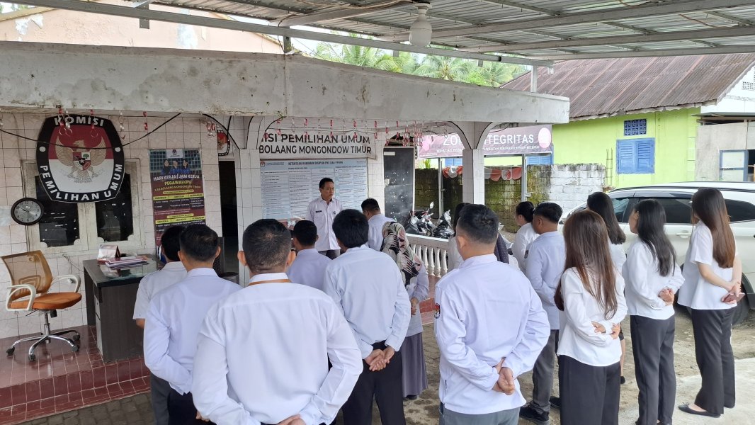 Tutuyan - Komisi Pemilihan Umum Kabupaten Bolaang Mongondow Timur (KPU Boltim) mengadakan kegiatan Ibadah rutin pegawai yang beragama kristen. Kegiatan ini merupakan agenda rutin setiap hari senin. Ibadah tersebut dipimpin langsung oleh Sekretaris KPU Boltim bapak Dolfie Kereh dan didampingi oleh kasubbag Parhubmas & SDM Hendra VS Marentek, Kasubbag Perencanaan, Data & Informasi Gabungan Sumendap, dan Staf Pelaksana yang ada di lingkungan KPU BOLTIM. Dalam ibadah ini, Sekretaris membawakan firman Tuhan, dalam Roma 15:1-13 dengan judul : “orang yang lemah dan orang yang kuat”. Dalam khotbahnya, pimpinan sekretariat KPU BOLTIM tersebut menghimbau agar sesama pegawai harus saling menghormati dan menghargai dan meskipun terdapat berbagai macam perbedaan yang dimiliki masing-masing pegawai dilingkup KPU BOLTIM, lewat ibadah ini semua pegawai diajak untuk mencintai & sesama melayani tanpa memandang perbedaan, sesuai slogan kita “ KPU MELAYANI ”. Senin, 07 Juli 2025